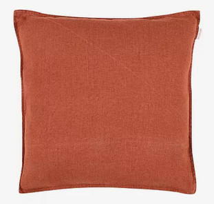 Punertavan ruskea Sabina-pellavatyynynpäällinen täydentää kokonaisuuden yksinkertaisella eleganssillaan. Pieni koristereuna lisää viimeisteltyä ilmettä.