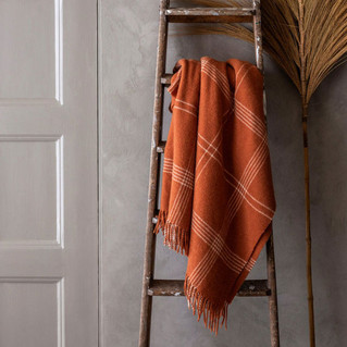 Lexingtonin ruudullinen torkkupeitto ruosteenruskeassa sävyssä on täydellinen valinta syksyyn. Se tuo lämpöä ja pehmeyttä sisustukseen ja on valmistettu vastuullisesti 100 % kierrätysvillasta.
