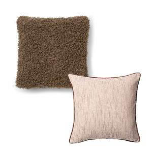 Lisää pehmeyttä ja kerroksellisuutta Ulli-tyynynpäällisellä, jonka pörröinen pinta houkuttelee lepäämään. Riviera Maisonin Sintra-tyynynpäällisen ruskea tere taas viimeistelee ilmeen tyylikkäästi ja toimii harmonisena parina Ullille.